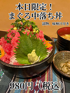 日替わり限定メニュー開催中です!◎混ぜ物無し無添加マグロ中落ち丼