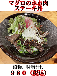 ◎さっぱりとした、まるでお肉の様なマグロのホホ肉ステーキ丼