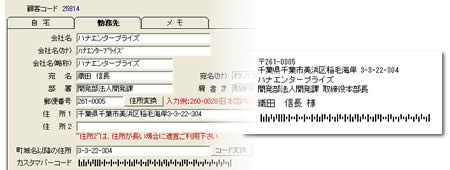 顧客管理システムの付加機能として提供されているカスタマバーコードシステムは、郵便番号からの住所自動変換機能と連動して、バーコードを作成します。